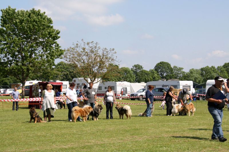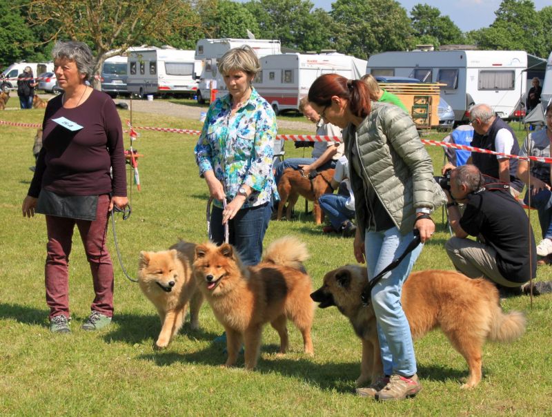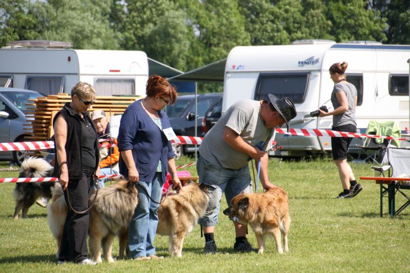 Das Organisationsteam war schon am Vortag angereist und viele fleißige Hände waren schon am Freitag dabei, den Ausstellering abzustecken, Richterpavillon und den Infostand aufzubauen, um diese Ausstellung reibungslos am Samstag über die Bühne zu bringen. Die Eurasierschau der Eurasierfreunde Deutschland e.V. und der Eurasierzuchtgemeinschaft e.V. beschreitet in der Welt der Rassehundeausstellung neue Wege und ließ auch schon in der vergangenen Eurasierschau in Walkershofen 2013 bereits u.a. die Hundezeitschriften „Wuff“ und „Breeders“ einen Artikel über das neue Bewertungssystem veröffentlichen. Unser Ziel ist, dass bei der Beurteilung unserer Eurasier nicht nur das äußere Erscheinungsbild der Hunde und der „Geschmack“ eines Einzelnen zählen, sondern insbesondere auch eine Vitalitätsselektion stattfindet. Deshalb haben wir uns für ein Wertungsgremium entschieden.